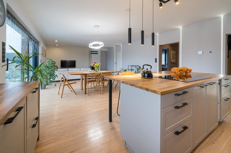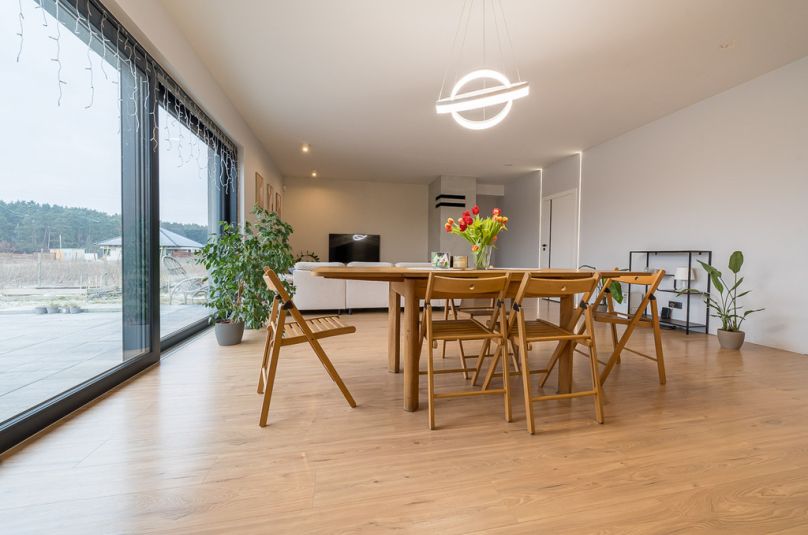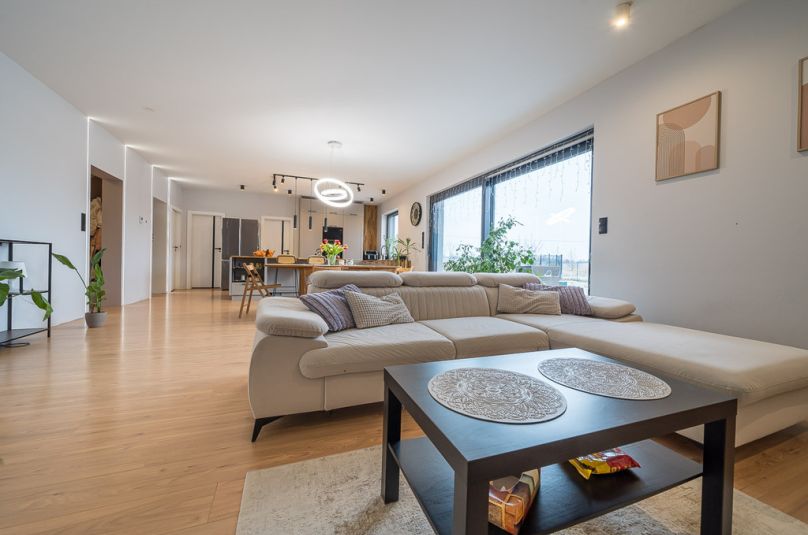 • przestronny salon połączony z kuchnią z wyjściem na taras,
