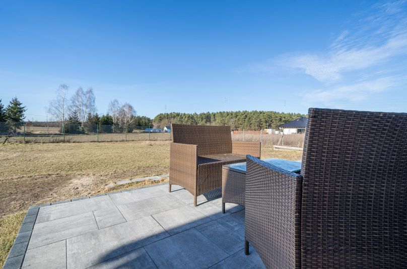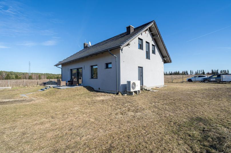 Dom wolnostojący oddany do użytku w 2023 roku o powierzchni 106 m² (dodatkowo poddasze do własnej aranżacji o powierzchni użytkowej 68,70 m²) został wybudowany według projektu Samotna Gwiazda M217.