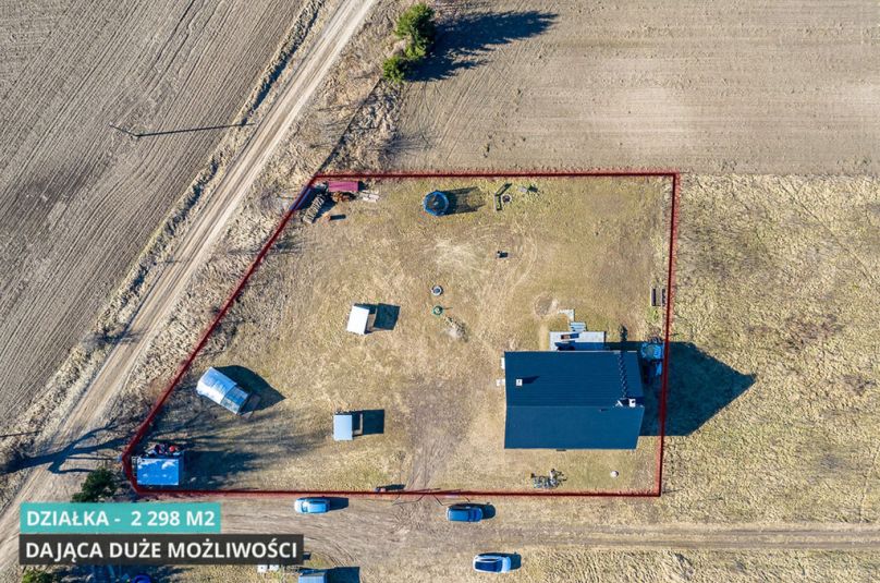 Nieruchomość położona jest na dużej działce o powierzchni 2 298 m², która zapewnia prywatność oraz szerokie możliwości zagospodarowania.