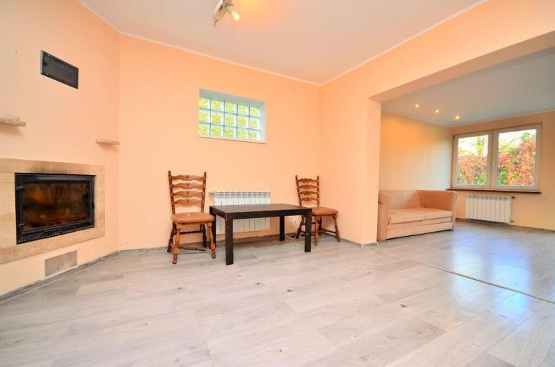 Na parterze znajduje się przestronny salon z kominkiem, kuchnia z wydzieloną strefą jadalnianą, WC, przedpokój oraz pomieszczenie gospodarcze.