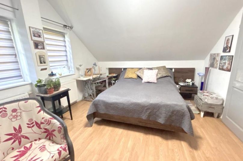 Poddasze o pow. 42 m2 po podłodze: duża otwarta przestrzeń z garderobą, łazienka z wc.