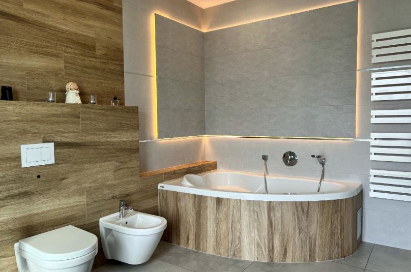 - elegancki pokój kąpielowy (12,89 m²) oraz osobna toaleta (2,18 m²),