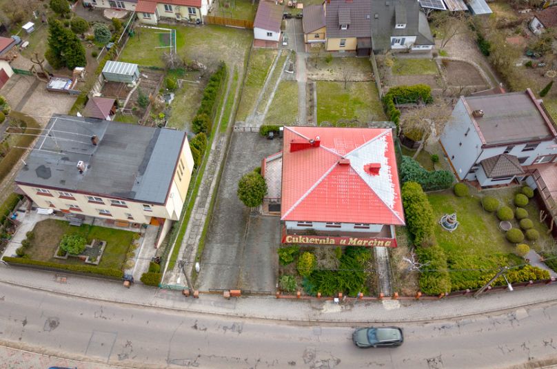 Całość jest podpiwniczona, a pomieszczenia piwniczne również mogą być wykorzystane do prowadzenia działalności – magazyn, produkcja, usługi lub zaplecze logistyczne.