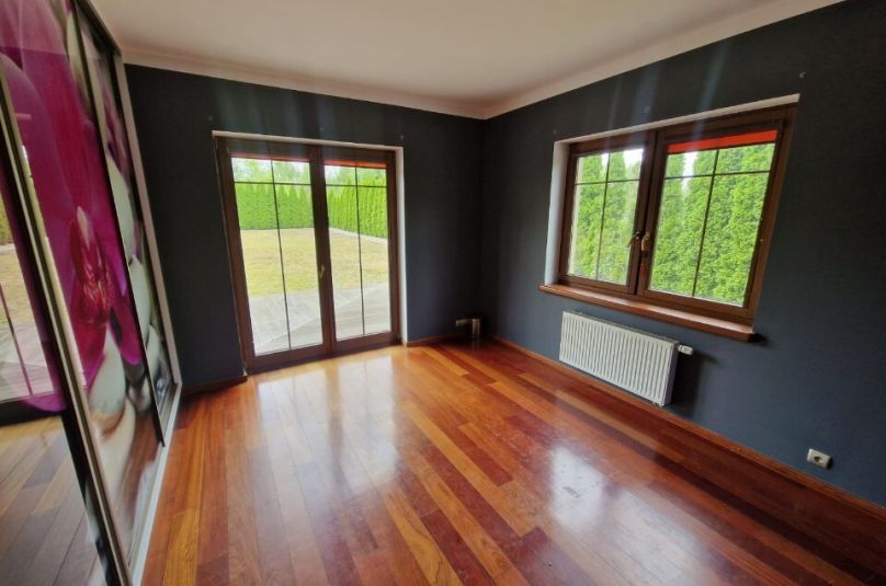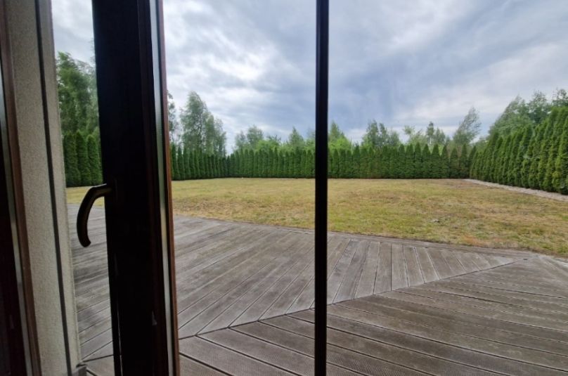 - z salonu jest wyjście na ogromny taras wyłożony deską egzotyczną, idealne miejsce na wypoczynek, piękny widok na zieleń