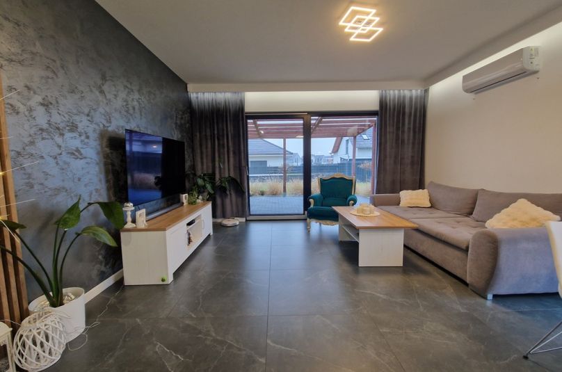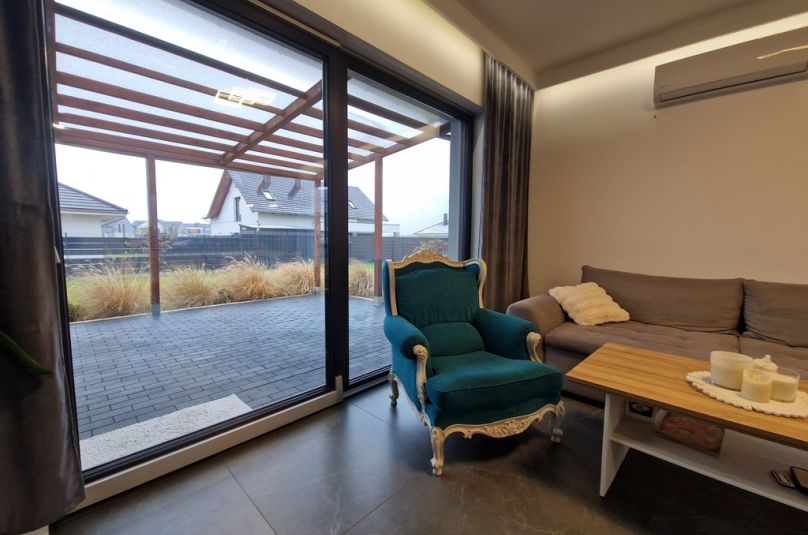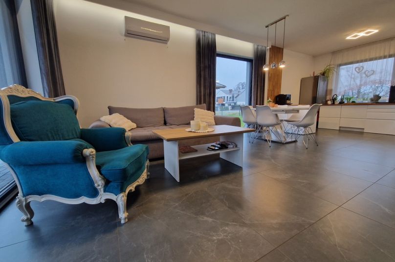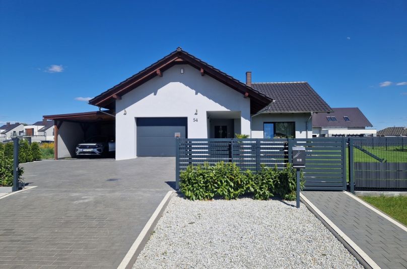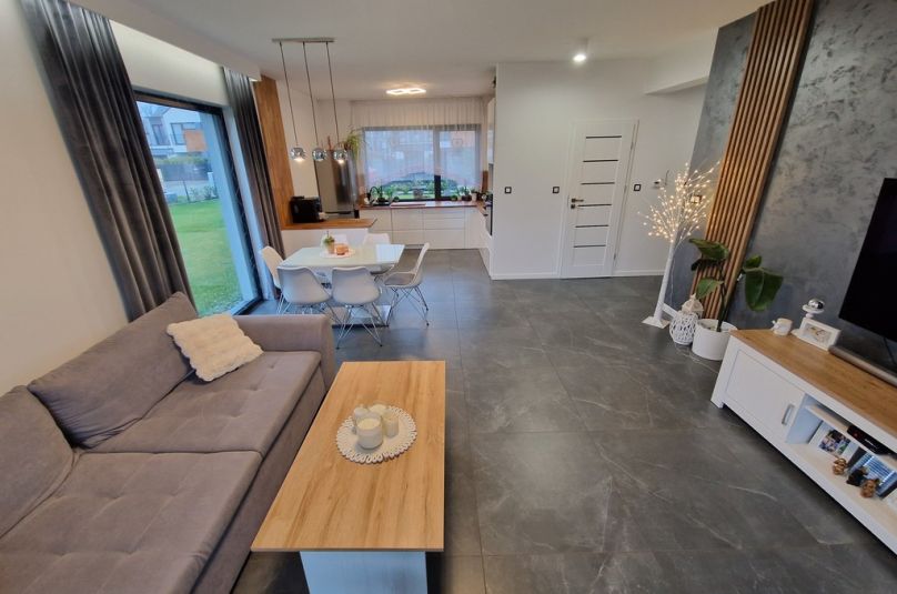 Dom został zaprojektowany z myślą o funkcjonalności i wygodzie, oferując przestrzeń dla całej rodziny. Minimalistyczne, jasne wnętrza, nowoczesne wykończenie oraz wysokiej jakości materiały sprawiają, że nieruchomość spełni oczekiwania nawet najbardziej wymagających klientów.