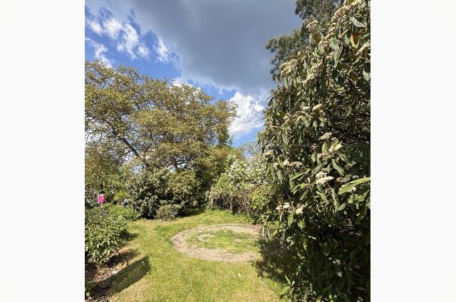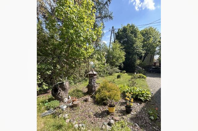 Działka jest ogrodzona, o regularnym kształcie, z licznymi nasadzeniami: