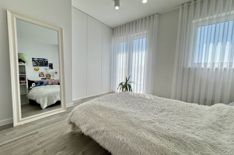 Ściany w pomieszczeniach szpachlowane i malowane, w łazienkach zastosowano glazurę. Podłogi w sypialniach wyłożone panelami, natomiast w pozostałych pomieszczeniach terakotą. Kuchnia nowoczesna, w zabudowie wraz ze sprzętem AGD.