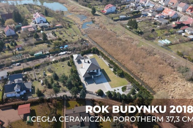 Budynek wykonany z cegły ceramicznej POROTHERM, ocieplony 20 cm styropianem grafitowym. Dach pokryty dachówką ceramiczną WIENERBERGER.