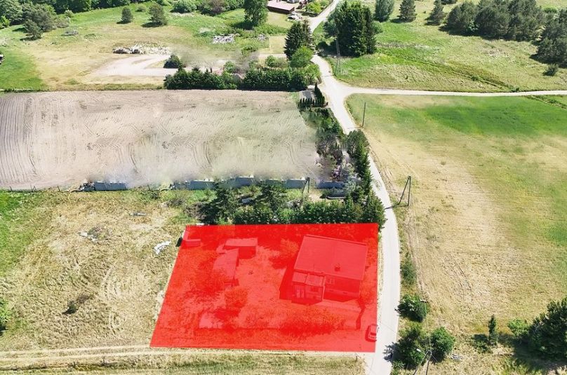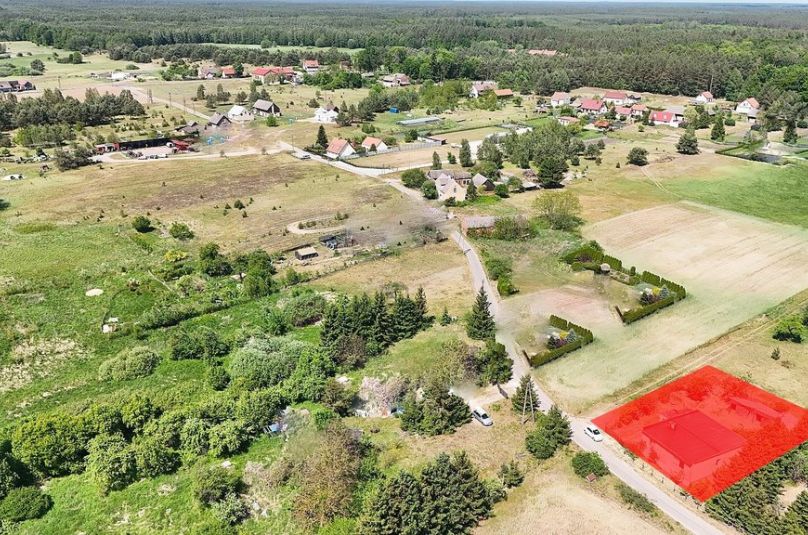 Nieruchomość znajduje się na przestronnej działce o powierzchni 1088 m², oferując przestrzeń i komfort życia w otoczeniu natury.