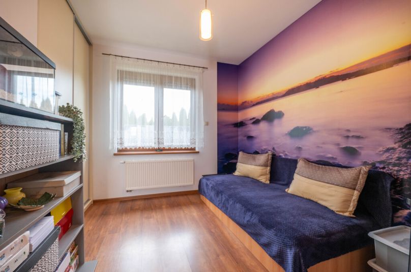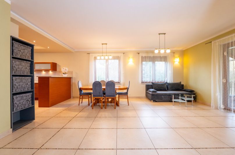 Przestronny salon stanowi serce domu – idealne miejsce na rodzinne spotkania, wieczory z książką czy wspólne posiłki. Jasna kuchnia pozwala cieszyć się codziennym gotowaniem, a dodatkowe pokoje doskonale sprawdzą się jako sypialnie, pokoje dziecięce lub gabinet do pracy zdalnej.