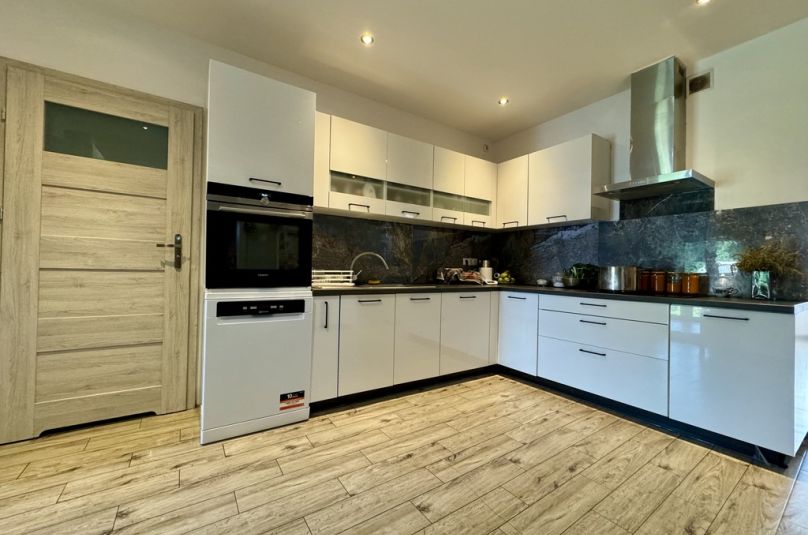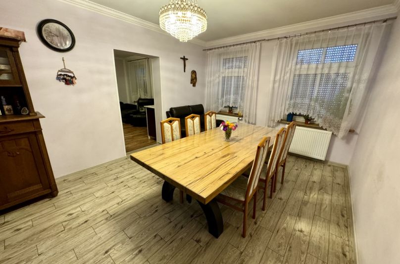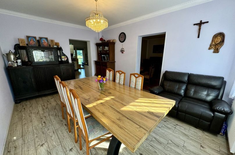 Dom wolnostojący o powierzchni 180 m², posadowiony na działce o powierzchni 3500 m². Nieruchomość po kapitalnym remoncie, ocieplona styropianem, wyposażona w stolarkę okienną PCV z roletami zewnętrznymi antywłamaniowymi na poziomie parteru. Dach pokryty dachówką betonową. Teren posesji w pełni ogrodzony.