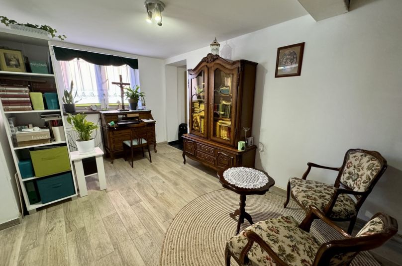 Na posesji znajduje się drugi budynek gospodarczy o powierzchni około 85 m², który został w pełni wyremontowany i zaadaptowany na cele mieszkalne. W jego skład wchodzi pokój dzienny, otwarta kuchnia, łazienka z WC, kotłownia oraz hol. Na poddaszu znajdują się dwie sypialnie.