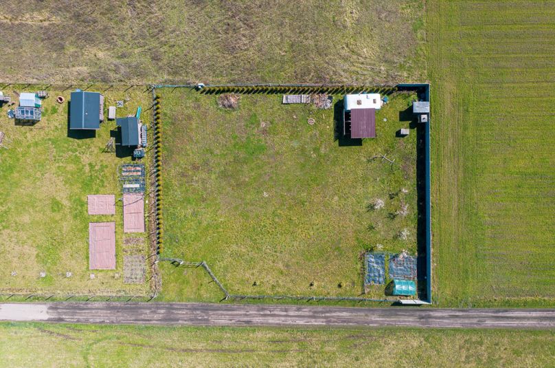 ✔ działka ogrodzona (siatka + elementy betonowe)