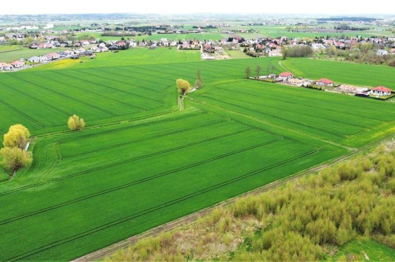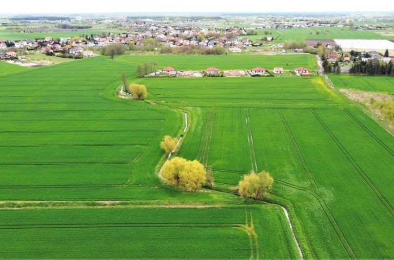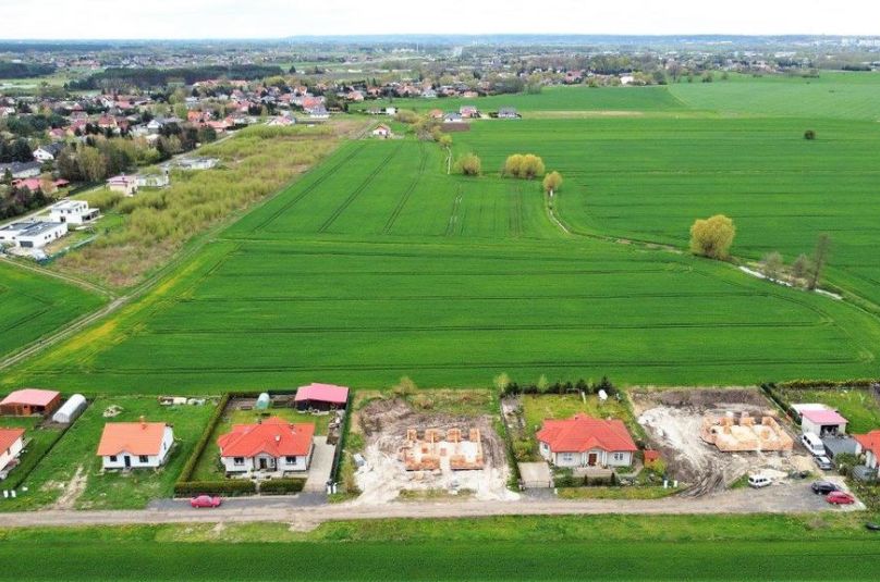 Działka w kształcie prostokątu, usytuowana na płaskim terenie, pasująca idealnie pod zabudowę domu jednorodzinnego.