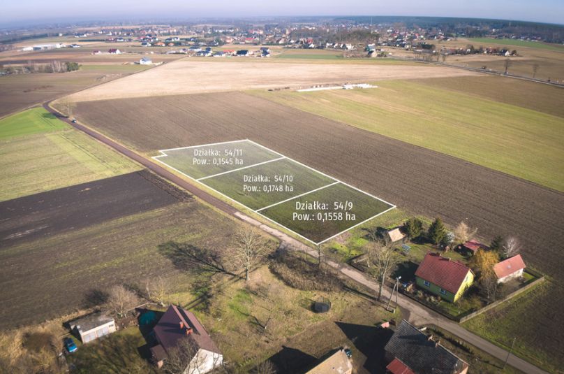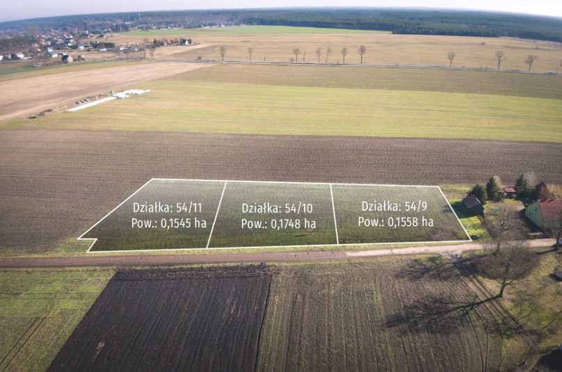 Działka w kształcie prostokątu, usytuowana na płaskim terenie, pasująca idealnie pod zabudowę domu jednorodzinnego.