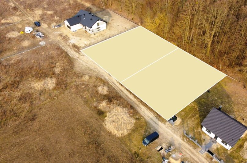 Przedmiotem oferty jest działka budowlana o powierzchni 1065 m², mająca kształt prostokąta i położona na płaskim terenie. Takie ukształtowanie sprawia, że jest to miejsce idealne pod budowę domu jednorodzinnego. Do nieruchomości prowadzi wygodna, utwardzona droga dojazdowa. Niewątpliwym atutem działki jest jej położenie bezpośrednio przy ścianie lasu, które zapewnia prywatność, ciszę oraz wyjątkowy kontakt z naturą.