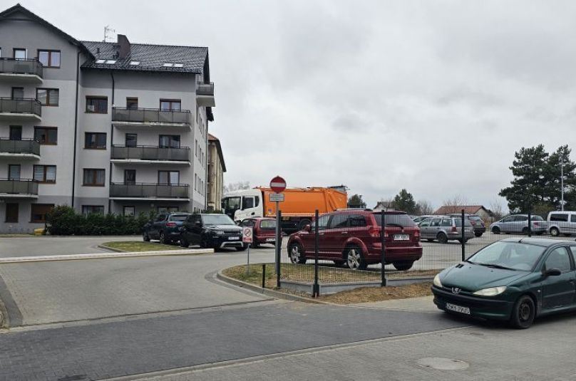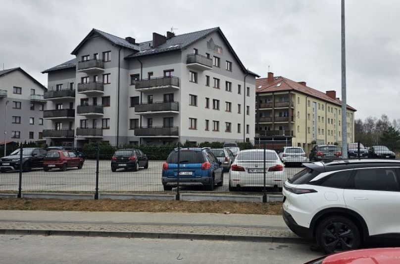 Wjazd na parking przy bloku zamykany na szlaban sterowany pilotem. Parking ogrodzony.