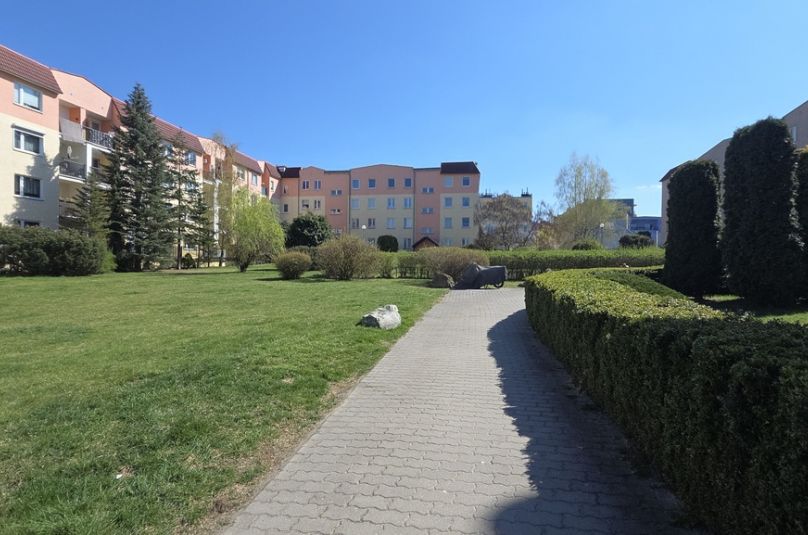 Teren przy bloku, parkingi zabezpieczone szlabanem, co gwarantuje miejsca postojowe dla mieszkańców.