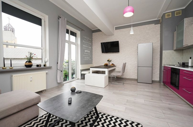 Mieszkanie znajduje się w spokojnej okolicy, a jednocześnie wszystko, czego potrzebujesz, masz dosłownie na wyciągnięcie ręki.