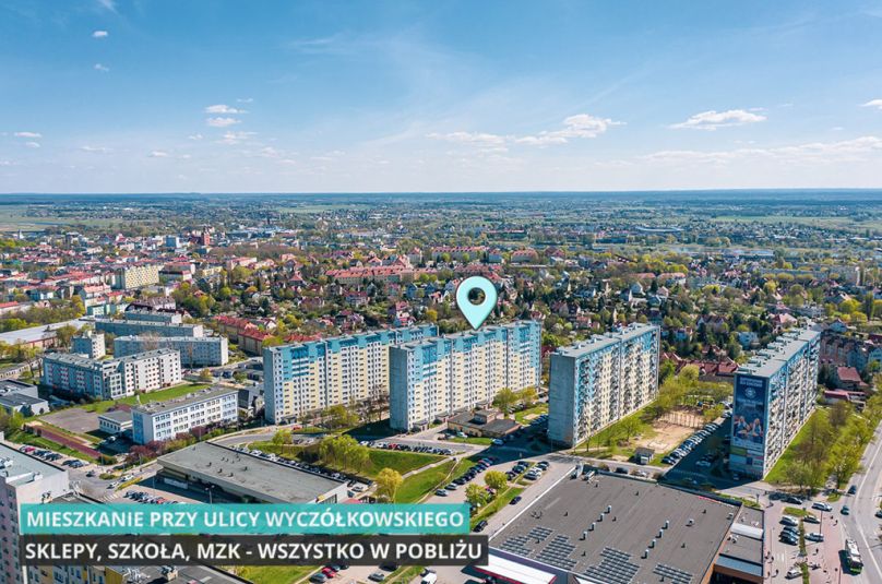 Mieszkanie znajduje się na 8 piętrze 10-piętrowego budynku z wielkiej płyty. Budynek w całości ocieplony, oddany do użytku w 1980 roku. W pobliżu tereny zielone oraz ogólnodostępne miejsca parkingowe.