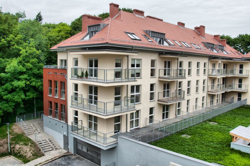 Lokal znajduje się na I piętrze w niskim, III kondygnacyjnym, nowo wybudowanym bloku mieszkalnym wyposażonym w windę. Budynek cechuje się nowoczesną architekturą oraz wysokim standardem wykończenia części wspólnych. Na terenie dziedzińca dostępne są miejsca parkingowe, a dodatkowo istnieje możliwość wynajmu miejsca postojowego w hali garażowej pod budynkiem.