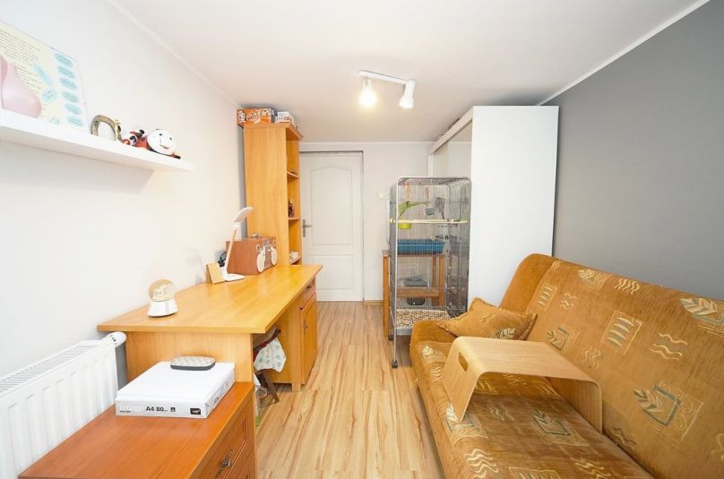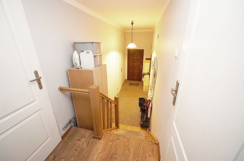 Stolarka okienna PCV, podłogi wyłożone panelami, łazienka w kaflach. Ściany wyszpachlowane, wymalowane.