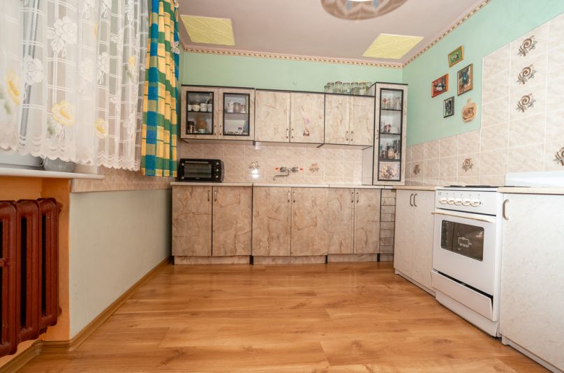Osobna jasna kuchnia z wydzieloną strefą jadalnianą,