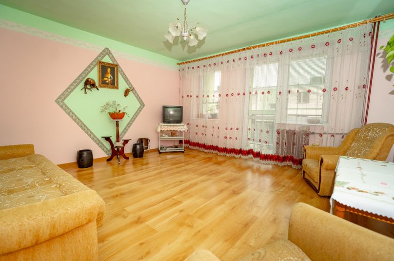 Trzypokojowe mieszkanie o powierzchni 72,70 m² usytuowane na pierwszym piętrze w dwu piętrowym bloku mieszkalnym w Skwierzynie.