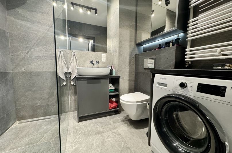 Mieszkanie wykończone w bardzo wysokim standardzie, z dbałością o detale. Kuchnia wykonana na wymiar przez stolarza, w pełni zabudowana i funkcjonalna. W przedpokoju znajdują się pojemne szafy w zabudowie. Lokal jest czysty, zadbany i gotowy do zamieszkania. Okna PCV zapewniają dobrą izolację termiczną i akustyczną.
