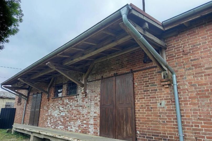 Budynek z cegły, 10 lat temu wymieniono blachę na dachu i okna na PCV, rozsuwane drzwi drewniane wykonane na zamówienie.